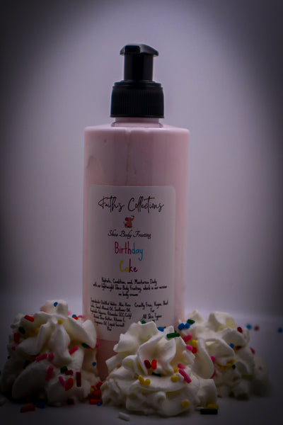 Celebrate your skin every day with our Birthday Cake Shea Body Frosting. it is infused with the irresistible scent of yummy frosting, this lotion captures the rich creaminess and delightful sweetness of vanilla, bringing a smile to your face with every application.