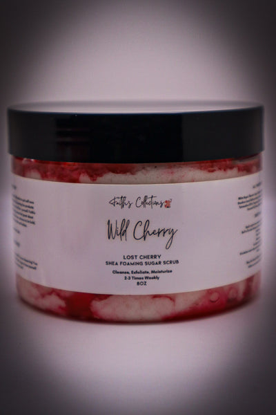 Our luxurious shea sugar scrub cleanses, moisturizes, and exfoliates your skin. This shea scrub is Lost Cherry scented. This scrub smells like an exciting blend of tart cherries, sensual rose, and mysterious woody notes yield an indulgently invigorating aroma.